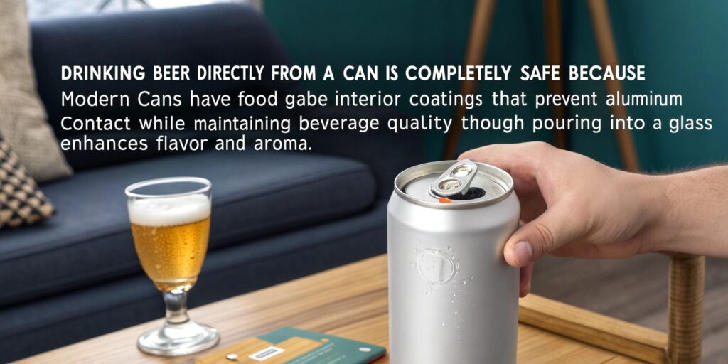 Drinking beer directly from a can is completely safe because modern cans have food-grade interior coatings that prevent aluminum contact while maintaining beverage quality - though pouring into a glass enhances flavor and aroma.