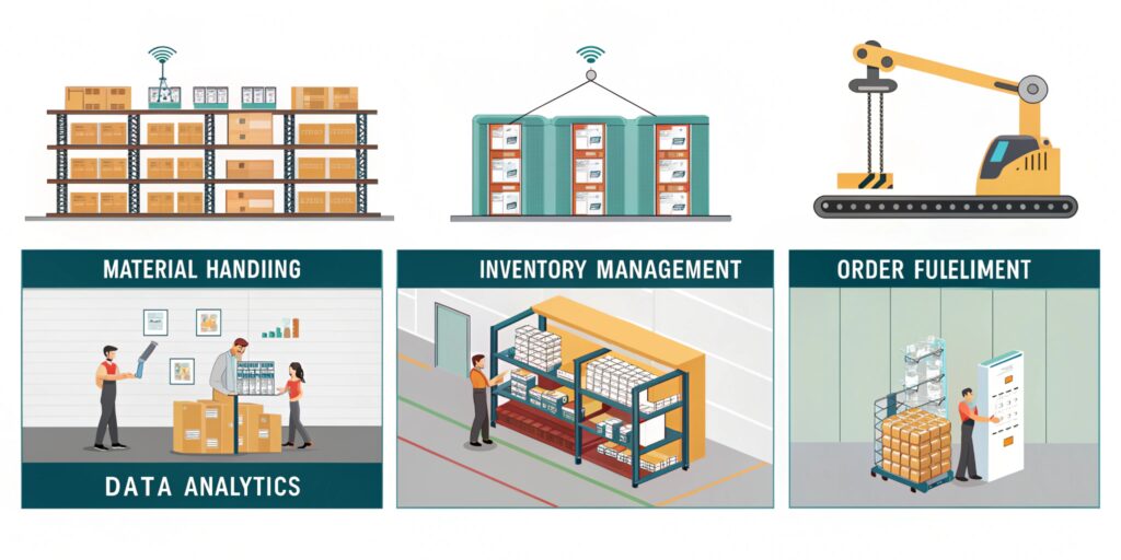 | Data Analytics | Uses data and software to reduce manual workflows and eliminate human errors. It integrates with other solutions to efficiently manage and automate tasks across different business and supply chain functions. | AI-powered analytics, data science, digital warehouse optimization. |